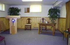 The pulpit is also 'home made'. Constructed from a stereo stand, dissassembled and specifically re-purposed for this use, again when we first started worshipping in our home in 1990 (See smaller pictures below). We were there for over 10 years. Wow, has anybody priced the cost of pulpits these days?