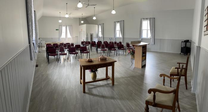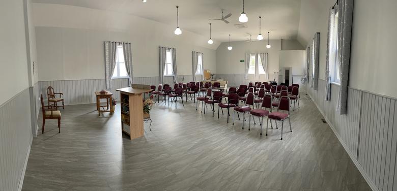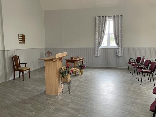Half of our chairs came from an insurance coverage 'replacement' when a city waterline break flooded our home basement including the large fellowship/worship room we met in, in our house. The remaining low-backed chairs with arms were given to us by Big Brothers Big Sisters when they replaced theirs.