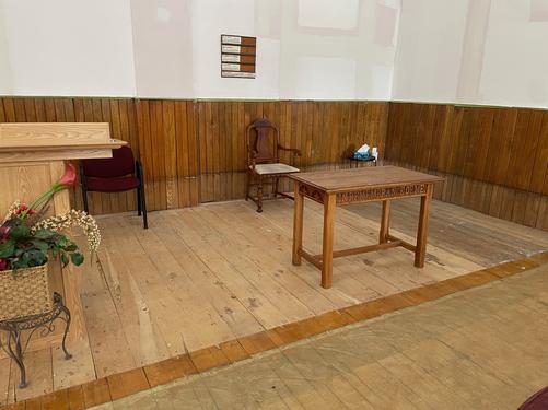 The 'song holder' on the all to the left is 'home made'. We have used it since 1990 when we first started meeting in the basement of our home. So 'home made' certainly applies here.