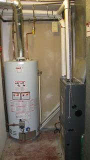 To says this building was and is a 'fixer upper' is an understatement is a bit of an understatement. Besides what we knew needed some TLC, there were a few surprises. Not the kind wrapped in pretty paper with ribbons and bows and a nice card. The windows needed some immediate attention as the existing ones were very old style and single pane. They were the kind with three holes at the bottom and a semi-rotating wood cover. With winter on the way they just wouldn't do. However, before we even reached that point the old furnace gave up the ghost. At that point it made sense to replace the hot water tank as well.